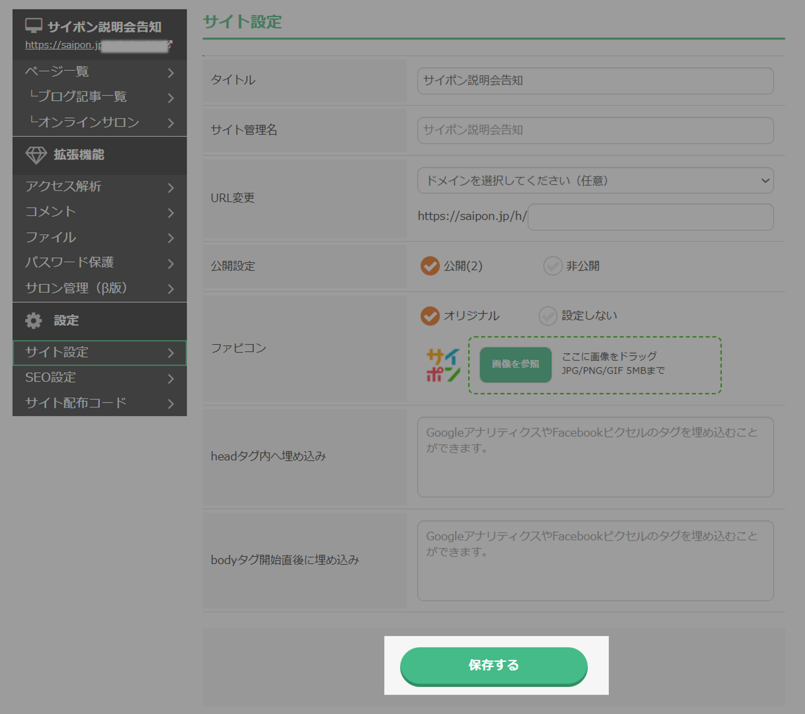 先に公開をしたほうがいい理由とは? → 「STEP3 サイトを公開する」※5 ファビコン 詳細はこちら → 「ファビコンを変更する」 ※6 headタグ内へ埋め込み GoogleアナリティクスやFacebookピクセル、